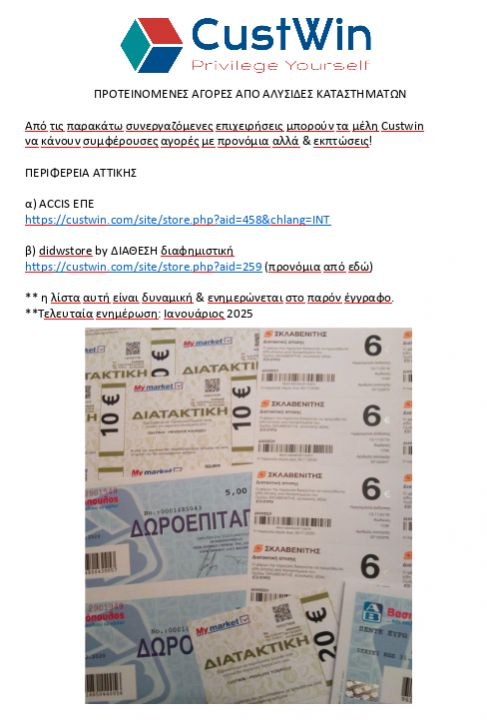 Για να μάθετε πως θα προμηθευτείτε κουπόνια Supermarket με προνόμια πατήστε εδώ