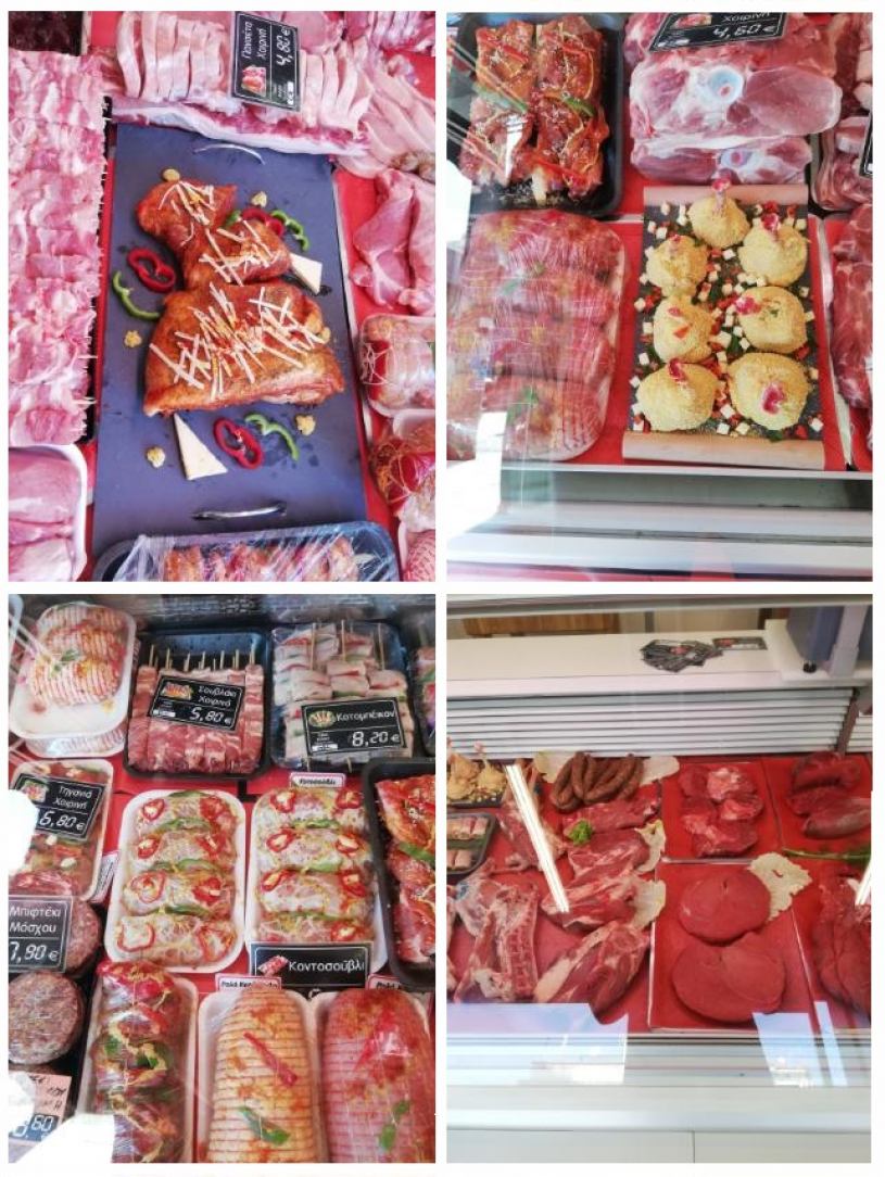 • Κοντοσούβλι • Εξοχικό Κοκορέτσι • Μπιφτέκια με βρώμη • Κοτομπέικον • Σουβλάκια μαριναρισμένα • Σνίτσελ • Κοπανάκι παναρισμένο • Ρολό • Κεμπάπ • Τηγανιά • Σεφταλιά • Κεφτεδάκια • Μοσχάρι γάλακτος ελευθέρας • Αρνάκι παραγωγής μας • Κατσικάκι ντόπιο • Κοτόπουλα ελευθέρας • Κουνέλι • Χοιρινό ελληνικό